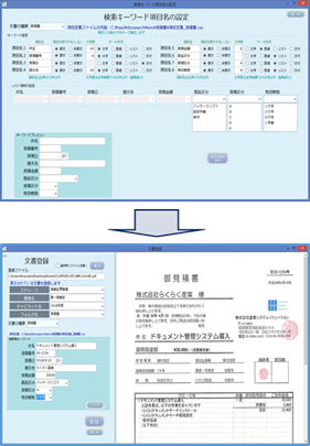 文書の格納先、文書の種類、文書の登録日、取引年月日、得意先名、金額、その他任意な5項目